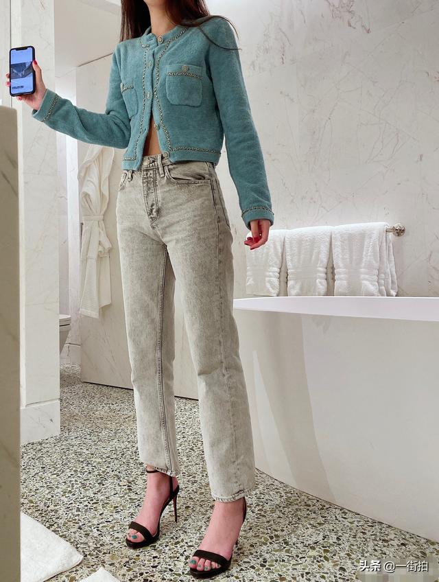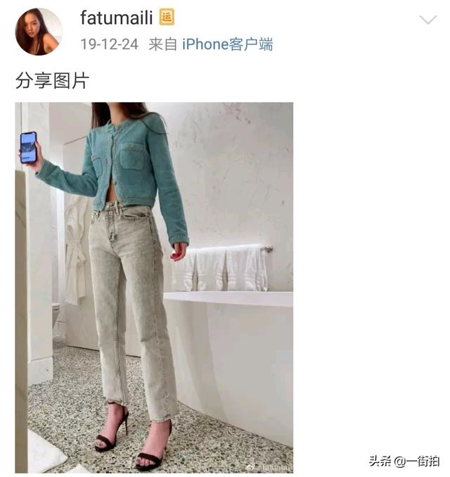 在法图麦晒出来的这张近照中的穿搭确实是很显高,蓝色的短款上衣解开了最下面的两颗扣子,还露出了平坦的小腹,再搭配浅灰色高腰牛仔裤,法图麦还罕见的穿了高跟鞋,小蛮腰与大长腿瞬间就全都展现了出来。短款上衣搭配高腰牛仔裤可以提高腰线,不仅能凸显出大长腿来,还可以在视觉上营造出拉长身材的效果,因此非常的显高而且显瘦呢。法图麦还很精致的在脚上涂上了指甲油,与上衣的颜色十分的相匹配。才17岁的法图麦,就穿上高跟鞋,变身小女人的感觉,非常亮眼。