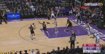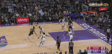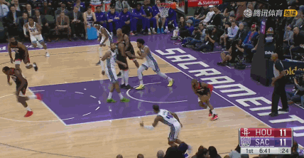 半场结束前7.8秒,国王进攻不中,火箭艰难守住后场篮板,保罗前场接到球,在即将失去重心的情况下,他送出了一个击地传球,给到了早就埋伏在底角的塔克。塔克这次没有错过机会,命中压哨三分。