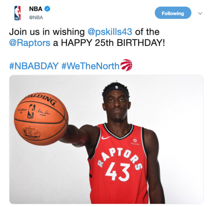 这个赛季在猛龙,前锋西亚卡姆经常能够打出非常亮眼的表现。今天是西亚卡姆25岁的生日,在社交媒体上,NBA官方特意发文,祝贺西亚卡姆生日快乐。