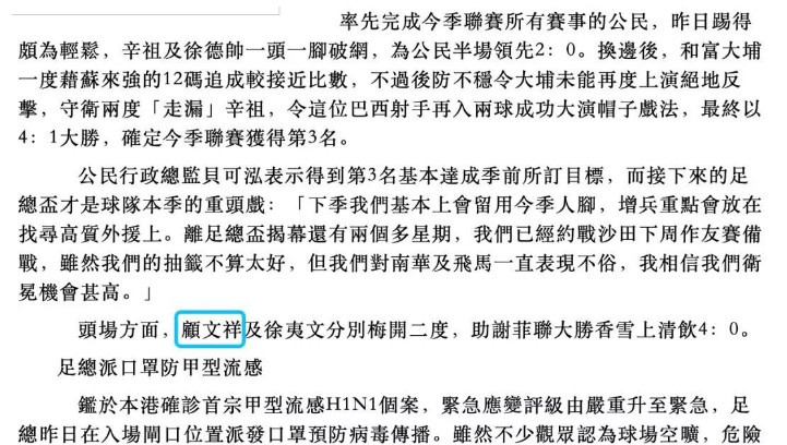 不过,在刚开始的半年,顾文祥的日子并不好过,“当时香港联赛有很多外援,也有不少规划球员。他们的存在,让我们的出场机会非常少,前半年几乎就没踢过球。”