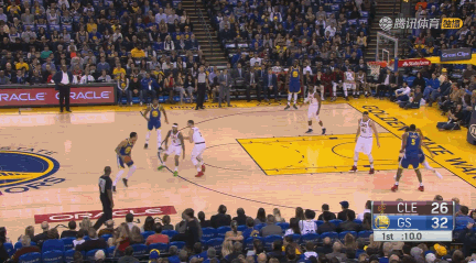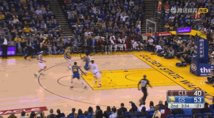 半场结束前,勇士完成一次精妙的攻防,杜兰特抢断打反击,把球传给库里,然后自己到一侧牵制防守。库里把球传到内线的库克,然后库克回传,库里空切后轻松上篮得手。