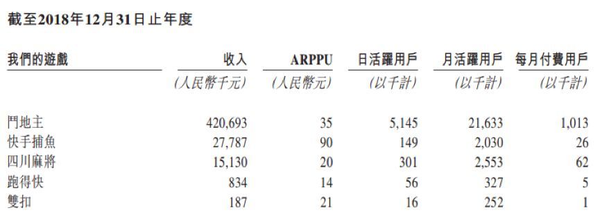 截至2018年,公司仍保持以斗地主为主要业务部分的经营策略,该部分收入达到了4.21亿元,其中ARPPU(每付费用户平均收益)达到了35元,相较2017年增长了25%。日活跃用户达到514.5万人,相较2017年增长22.6%。月活跃用户达到了2163.3万人次,同比增长25.2%。