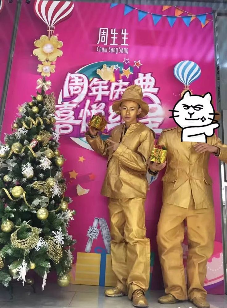 小鬼说,当时他不想伸手跟家里要钱,于是就跑去人家店里打工,扮“小金人”。