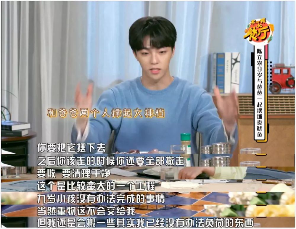 因为鱿鱼摊只能靠他和爸爸两个人支撑,所以陈立农9岁时就已经不得不承担起一些可能超过自己负荷的东西。