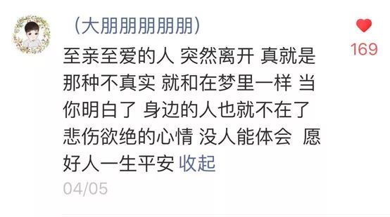 清明节是一个悼念逝去亲人的日子,我原来总觉得这个日子与我无关,但在2018年8月9日你生命定格的那一刻开始,我知道以后所有和逝人有关的日子都会和我紧密相连。从此我们生活在不同的地方,过不同的节日,你能留下的就只能是回忆。