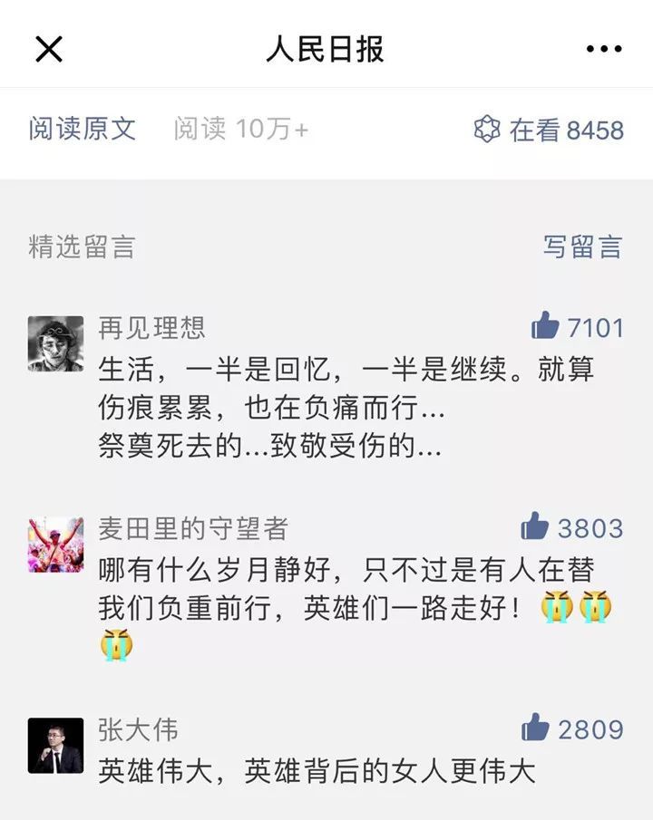 在各个知名微信公众号里,网友们对这个视频的留言震撼人心: