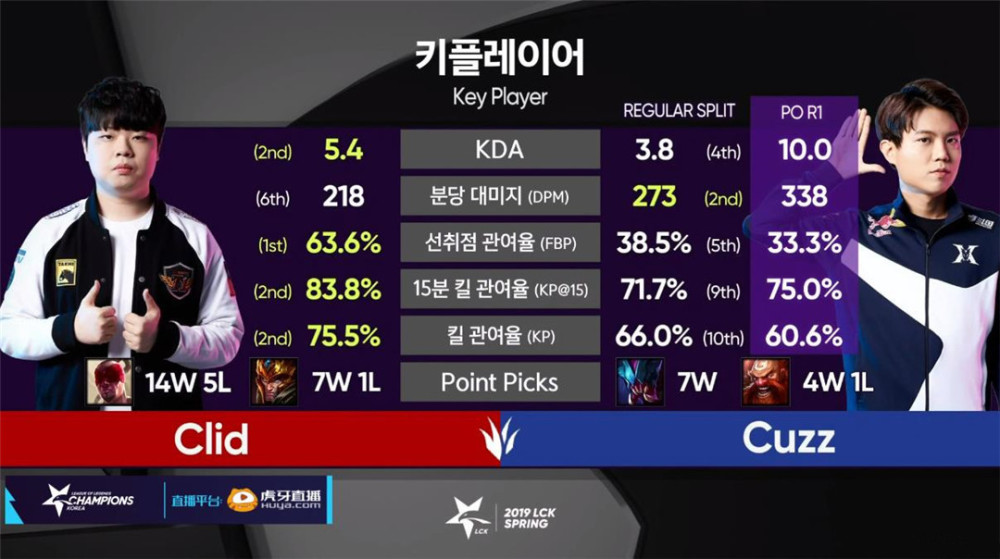 至于SKT与KZ的这场季后赛对战,一共有2个关键点。第一个关键点,就是双方打野的对战。Clid与Cuzz,算是新老选手的对战了,而从S9春季常规赛情况来看,Clid的表现要优于Cuzz。并且常规赛结束后,Clid的MVP在联赛排名第三,而Cuzz排名比较低。