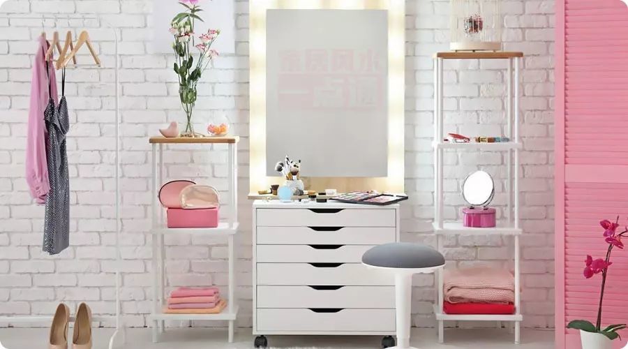 1、梳妆台代表家中女性的财库,所以最好也要靠着一堵墙,可以使家中女性的财源比较稳定。