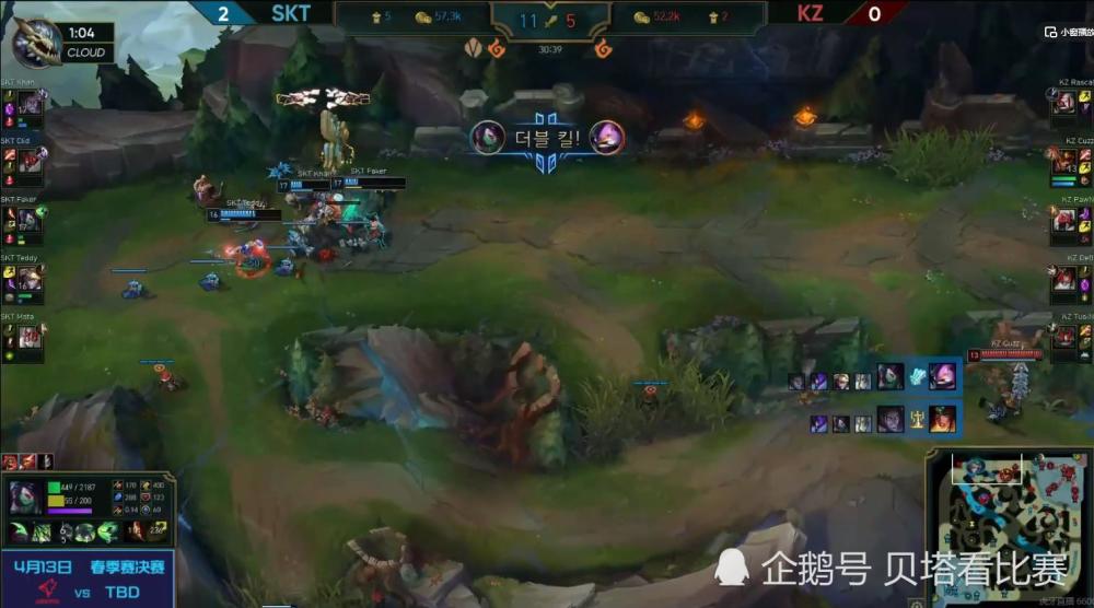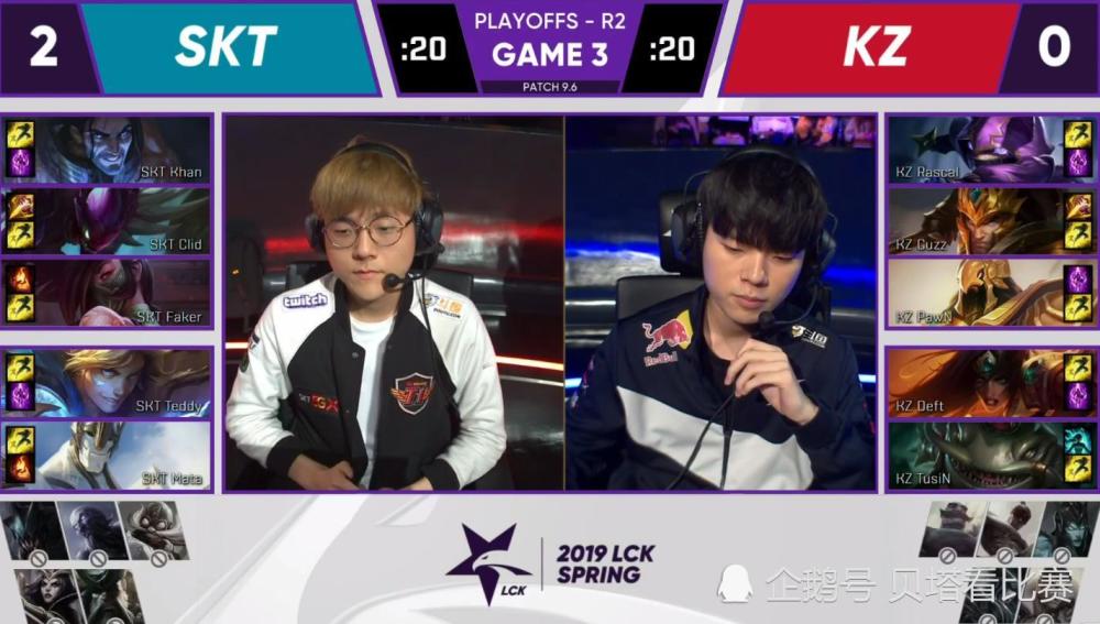4月7日晚上结束的LCK春季赛季后赛SKT和KZ的半决赛,前两局KZ全部在优势情况下被SKT翻盘,第三局KZ选出了终极后期阵容,SKT选出了前中期阵容,前期SKT拿到了不错的小优势,最终KZ选择打大龙的时候,Faker阿卡丽一打四击杀掉了cuzz...