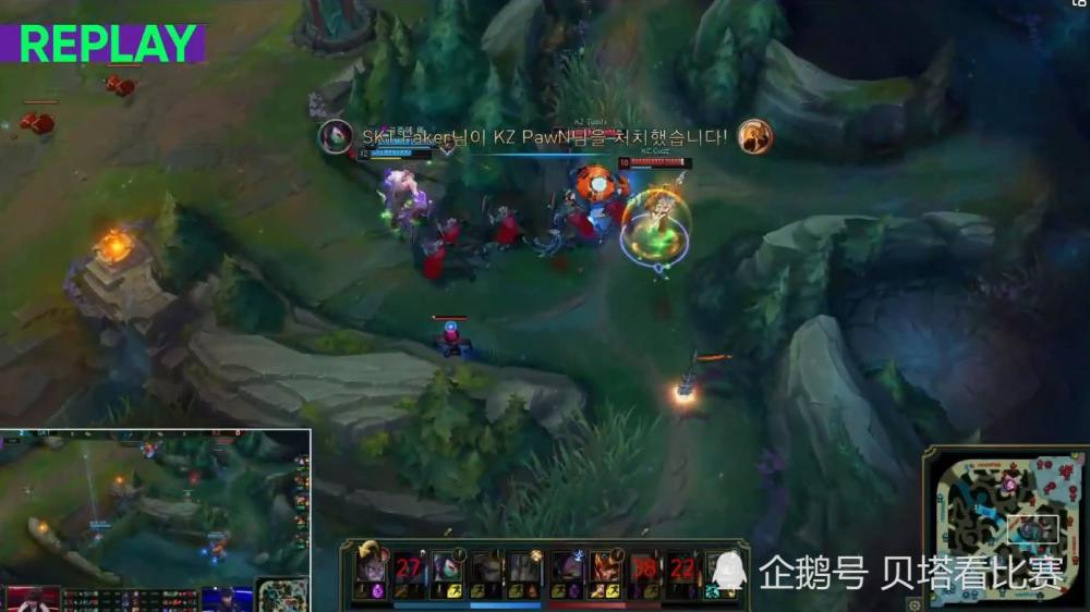 35分钟,SKT偷下了第一条大龙,36分钟,KZ想要包夹teddy,但是SKT众人赶来团灭了KZ后,一波结束了比赛。