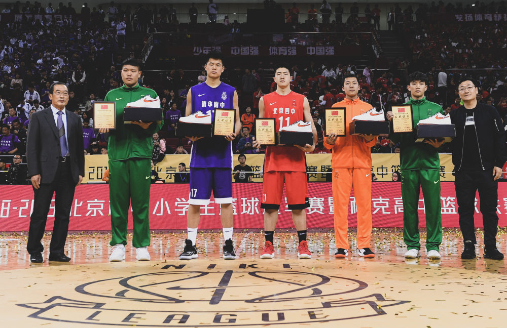赛后进行了颁奖仪式,入选赛区最佳阵容的后场球员是首师附中的毛江龙和杨镇一中的李闻龙,锋线球员是北京四中的李子豪和清华附中的褚添一,中锋球员是密云二中的翟辰,这几名球员在本届耐高整体表现最为出色,也是各自球队的核心球员或重要得分点。