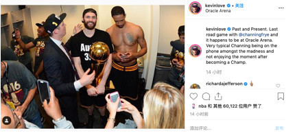 骑士上场输给了金州勇士,比赛本身并没有太多的悬念。都知道,这个赛季结束之后,钱宁-弗莱就将告别江湖,而对阵勇士的比赛,是弗莱职业生涯最后一个客场的比赛,在社交媒体上,骑士前锋凯文-乐福晒出了一张当年和弗莱一起夺冠时候的旧照,然后写道,“过去和现在,最后一次和弗莱征战客场的比赛,都是在甲骨文球馆。典型的弗莱,被手机疯狂的吸引着,他并没有享受夺冠之后的这个时刻。”