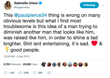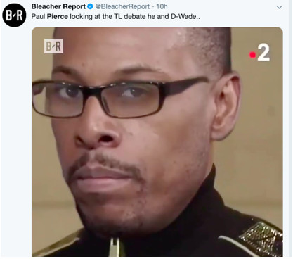 看到皮尔斯言论,韦德的妻子回应,“保罗-皮尔斯的说法显然是错误的,但我觉得这个观点最糟糕之处在于,一个人为了获得更多关注,试着去贬低另一个和他看起来很相似的人。这样的做法一点都不有趣,这让人感到难过。”