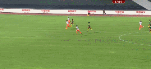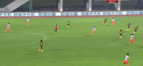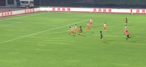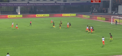 第35分钟,王霜前场拿球,被扬谷放倒,主裁向扬谷出示黄牌,同时中国队获得前场任意球机会,王霜操刀主罚将球送入禁区,王珊珊头球摆渡给后点的古雅沙,但古雅沙包抄稍慢,错失空门良机。