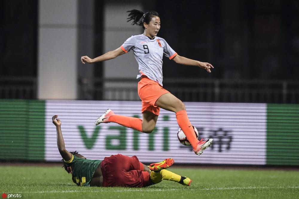 腾讯体育4月7日讯北京时间今晚,2019武汉女足四国赛决赛,中国女足迎战喀麦隆女足。最终,凭借王珊珊的进球,中国女足1-0战胜对手,夺取四国赛冠军。【聚焦中国女足】中国女足迎战喀麦隆第2分钟,恩乔亚带球杀到中国队禁区前沿,...