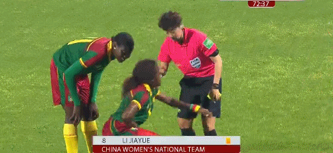第18分钟,喀麦隆快速反击,奥戈恩甩开2名中国队后卫快速插入禁区,幸亏毕晓琳出击将球滑铲破坏,随后毕晓琳又冲到禁区前沿,化解了对手的二次进攻。