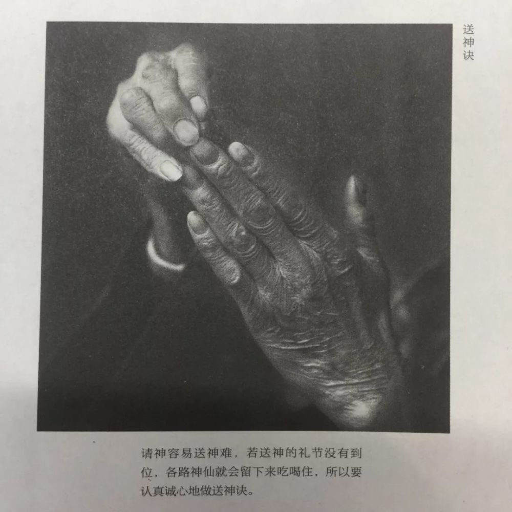 巴岱最为神秘的便是犹如密码一般的手诀,这其中包括了战斗过程中非常具体的内容,如“用武器驱鬼”“收兵回坛”“送神护身”“追魂打洞”等,也包括了为乡民祛病解厄的法力。