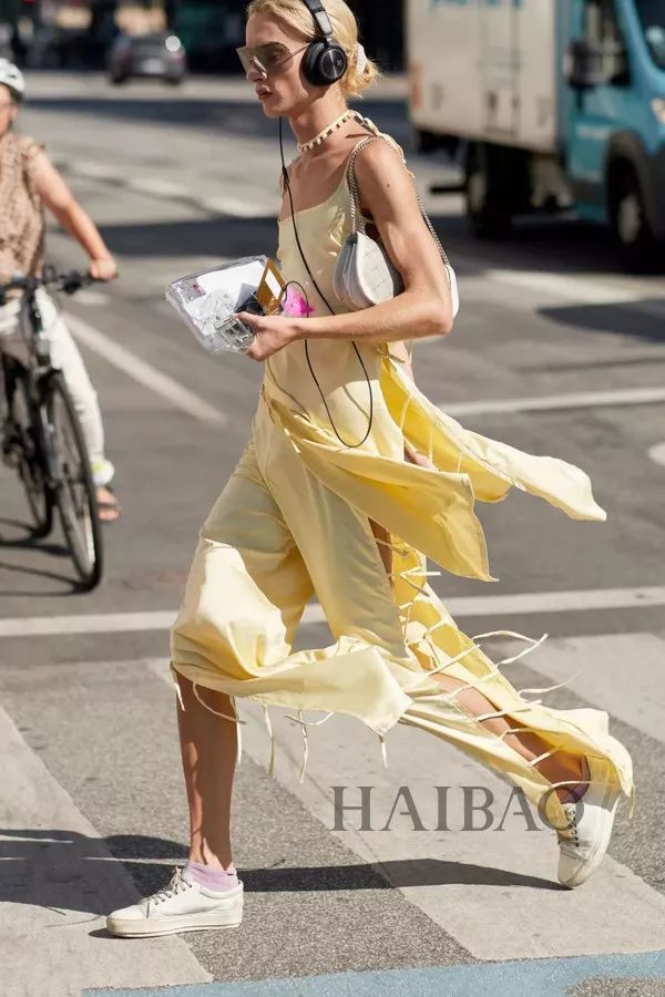 慵懒Sexy的丝缎裙,球鞋让它变得日常生动