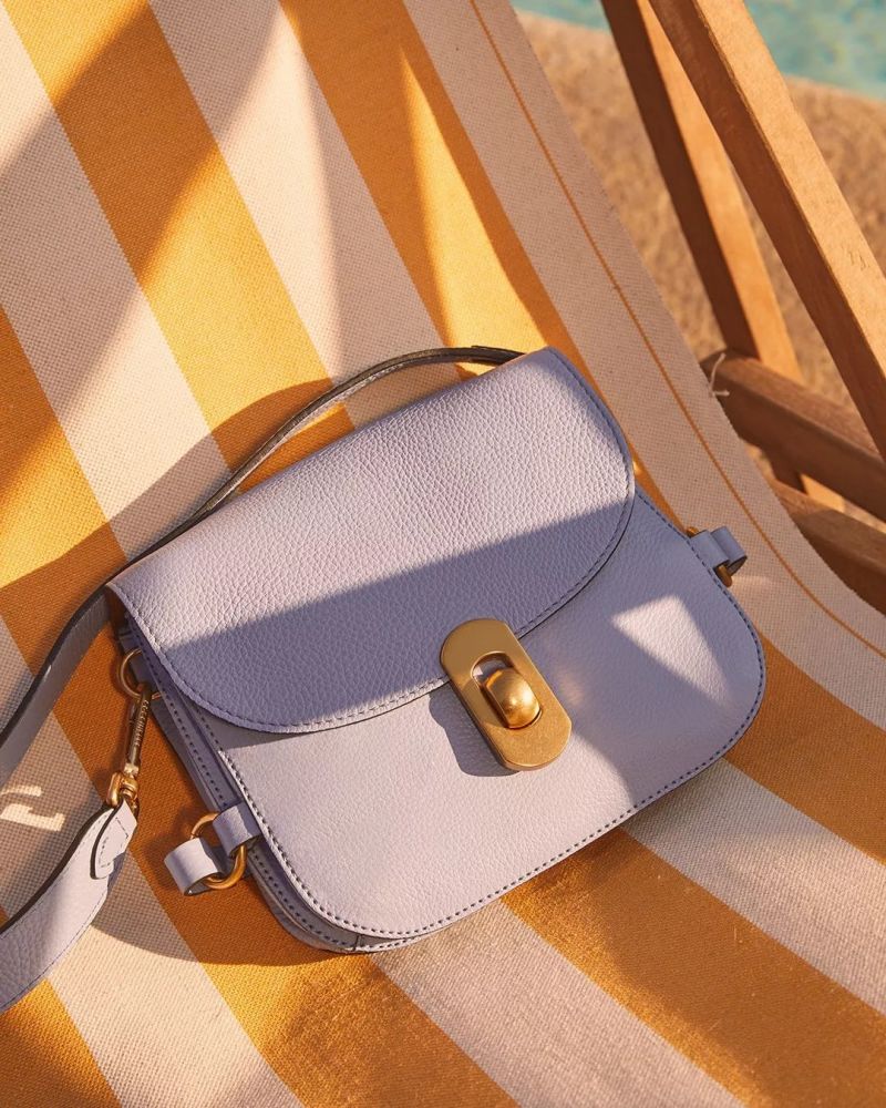 如果你平时性格、穿衣风格都偏温柔知性,那么不妨考虑浅紫色。它和衣橱里的基本款衬衣、裙子都是搭得起来的,背出去还不容易和别人撞色。