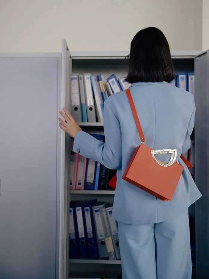 看到「礼盒包」的第一眼,我已经准备好“冲动消费”了。它的珊瑚橘配色正是今年的年度流行色,怎么背都是吸睛的。方正的盒子造型上多了半圆手挽的加持,可以当斜挎包、单肩包,也可以直接手提,尤其适合通勤女孩。