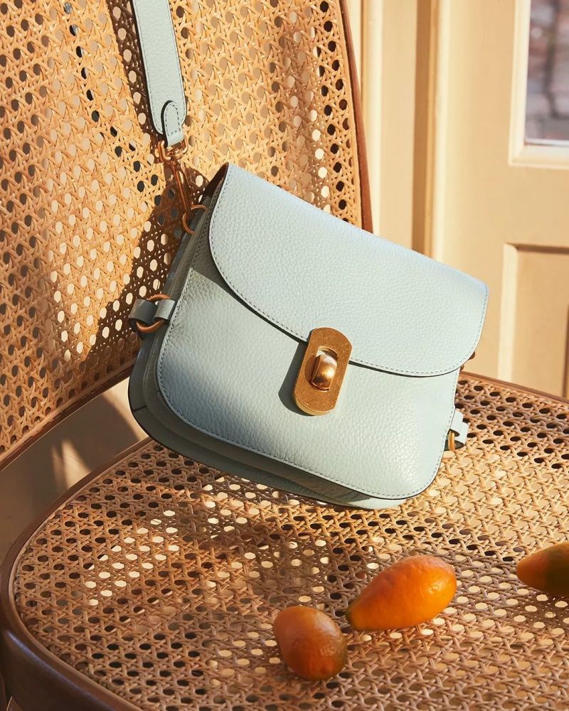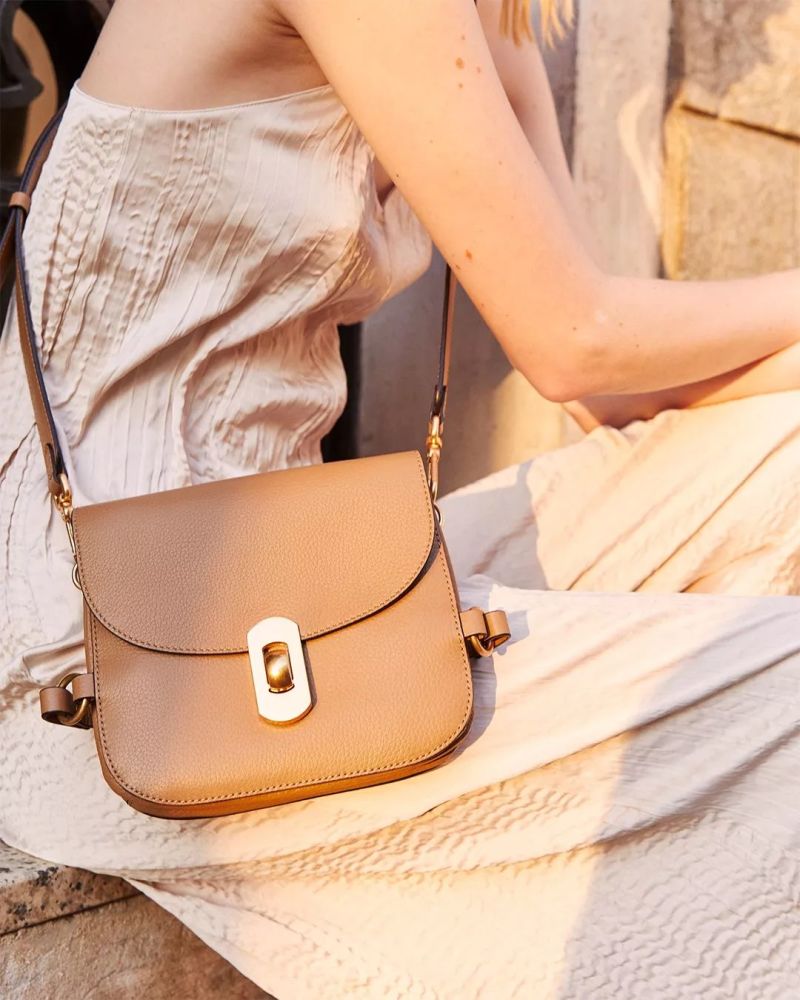 糖果色的Belay Crossbody应该会吸引不少甜美系的女生。别致的梯形包型就已经足够吸引眼球了,再用淡黄色配上嫩绿波点裙,大概就要和这浪漫的春景融为一体了。