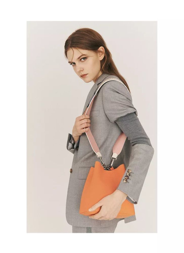 这个珊瑚红色自然是最应景的,跳脱、醒目,适合拎出去度假。另外宽肩带的塑造性也比细肩带更高,尤其是斜挎背的时候,酷女孩的既视感立马出来了。