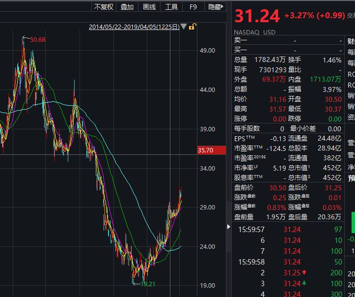 截至目前,京东股价为31.24美元,市值超450亿美元。