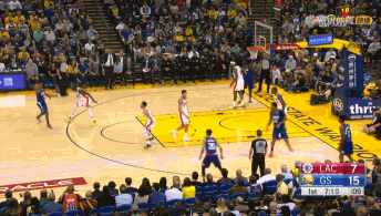 第三节结束前59.5秒,库里抓住机会完成一次暴扣,给甲骨文球馆的球迷送上了一份大礼。不过因为快船提前犯规,这一球并未算进。即便如此,勇士主场球迷仍非常兴奋。