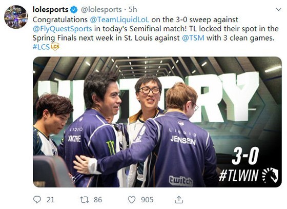 TL挺进LCS春季赛决赛 大师兄“已经在为MSI做准备了”