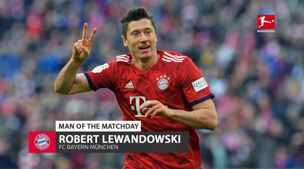 腾讯体育4月8日讯 德甲第28轮,拜仁主场5-0大胜多特,完成复仇,同时在积分榜上也以1分的优势领先对手。本场比赛拜仁球员莱万多夫斯基梅开二度,他被德甲官方评为本轮最佳球员。