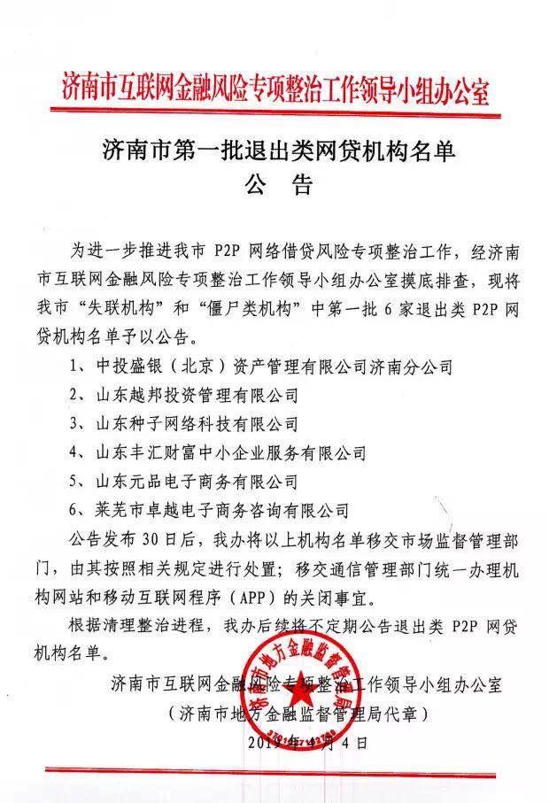 济南披露6家退出类P2P网贷机构名单 将不定期公告