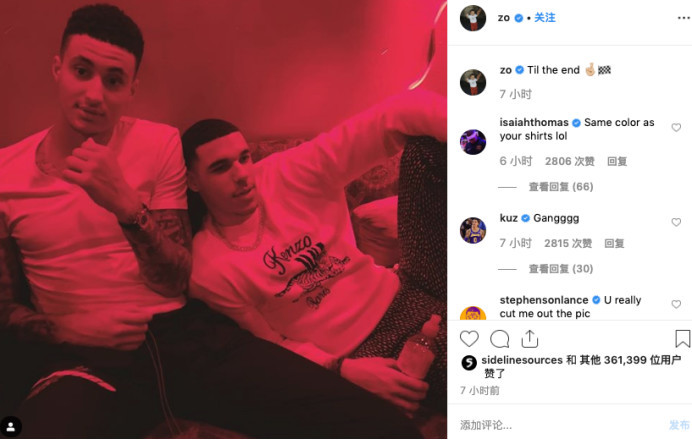 最近一段时间,湖人后卫波尔忙于场外的一些事务,不过,今天在社交媒体上,球哥晒出了一张和库兹马的合影,然后写道,“直到最后。”