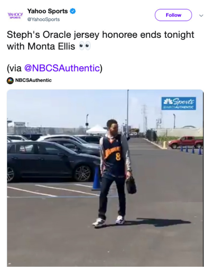 最近一段时间,勇士球星斯蒂芬-库里经常会用自己的方式,去向前辈们致敬。勇士今天迎战快船,库里拿下了全场最高的27分,带领球队取胜,而比赛开始之前,库里身穿一件前老大蒙塔-埃利斯当年的战袍,进入了球场。
