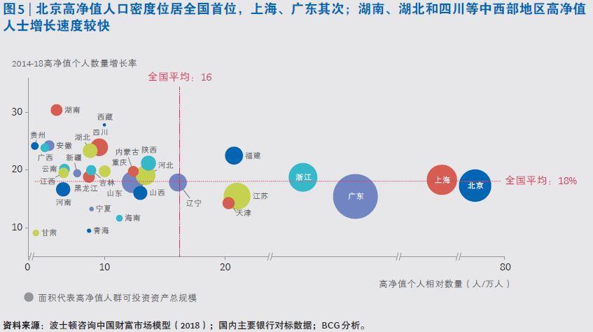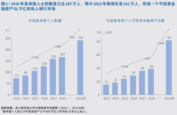 截至2018年底,中国个人可投资金融资产总额为147万亿元人民币,个人可投资金融资产600万元人民币以上的高净值人士数量达到167万人,中国财富市场体量世界第二的地位进一步巩固。民营企业家仍是中国高净值客户群体的绝对中坚力量;北京以每万人78名高净值人士,成为全国高净值人士密度最高的地区。