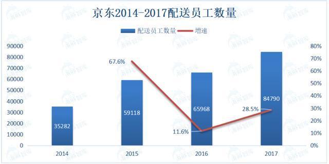 截止到2018年12月底,京东员工总数达到17.8万人。虽然不知道具体有多数配送人员,但我们可以通过历史数据推算出来。