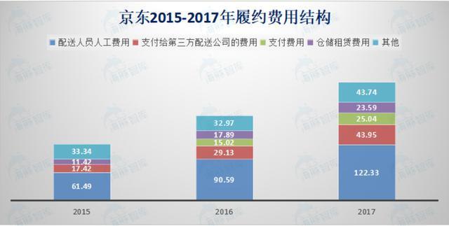 京东的快递人员薪酬到底如何?其实在财报中我们可以寻找到蛛丝马迹。2015-2017年,京东配送人员数量分别为5.9万人、6.6万人、8.5万人。