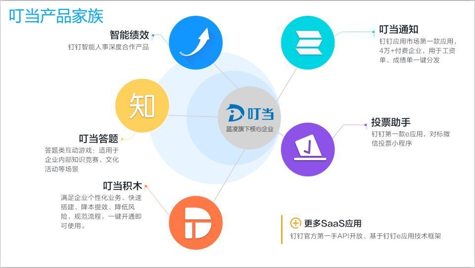 2014年,为了进一步丰富、深拓企业协同方面的应用,当时刚刚起步的钉钉团队找上了蓝凌,现任蓝凌叮当(蓝凌孵化的的SaaS公司)CEO、当时负责蓝凌创新孵化的刘向华接待了他们。