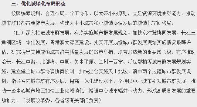 《2019年新型城镇化建设重点任务》在第三部分,优化城镇化布局形态中说: