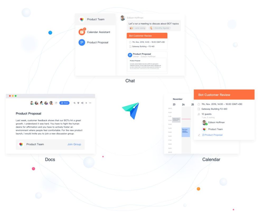 从功能上来看,Lark 和市面上已有的产品并无太多差别,即时通讯+共享日历+文档在线协作就是其全部功能。但不同的是,Lark 基本只是让三大功能在单一平台上实现实时协同,无缝切换,却没有做考勤、流程管理或财务报销一类企业办公软件必备的功能。