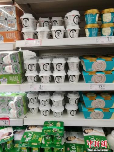 图为超市里的和润酸奶区。 谢艺观 摄