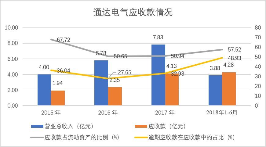 应收款高速增长,近一半应收款逾期,通达电气为了上市而实行的重销售轻回款的高增长商业模式恐难以继续维持。