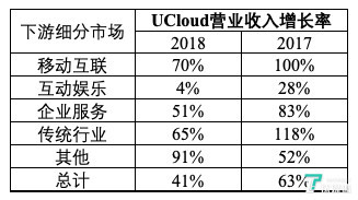 据招股书中披露的数据,UCloud营业收入的增长率较高领域主要是是移动互联、企业服务、传统行业三大类,但这三大类的营收增长率在2018年大幅放缓,导致其2018年的总体营收增长率由63%下滑至41%。其他类营业收入是唯一实现增长率突破的领域,从2017年的52%增长至2018年的91%。至于“其他”主要包含哪些行业, UCloud在招股书中并没有明示。