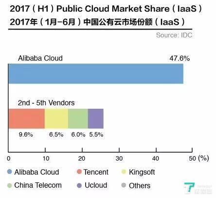 相似的结果在其他云计算厂商也有发生,金山云由2017年的排名第三,但2018年却被中国电信和AWS反超,排名第五,份额从6.5%降至4.5%。就连排名第一的阿里云,份额也由2017年的47.6%跌至43%。另一方面,除了腾讯云份额增加,百度云、微软Azure、华为云也从2017年的“其他”列表纵身跃至前台。