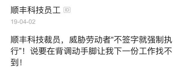 近日有顺丰科技员工爆料,公司裁员手段非常狠,不签字就强制执行,而且会在背调上下手脚,让员工不好找下家!