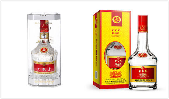左为五粮液52度普五,右为系列酒