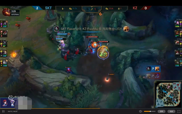 一群好的队友可以让选手更加自信,faker也是如此,有了队友做后盾的他,让我们看到了那个S5时期的faker。第三局的29分30秒,利用兵线的牵扯准备偷龙,当时只有faker在龙坑,KZ四人打龙,faker的阿卡丽直接大招进龙坑,当着其余三人的面把KZ的打野皇子秒了,而faker还不想走,开着霞阵要一打三。最后不但阻止了KZ打龙,自己没死还等来了队友的支援,可以说让KZ直接心态爆炸。