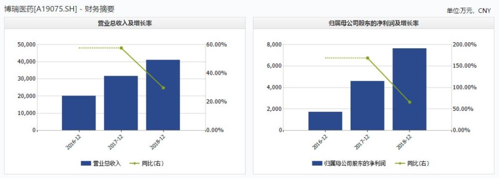 据招股说明书披露,博瑞医药2016年至2018年的营收分别为2.01亿元、3.17亿元、4.11亿元,净利润分别为1706万元、4587万元、7624万元。公司的毛利率水平较高,综合毛利率分别为57.67%、58.93%和58.83%。