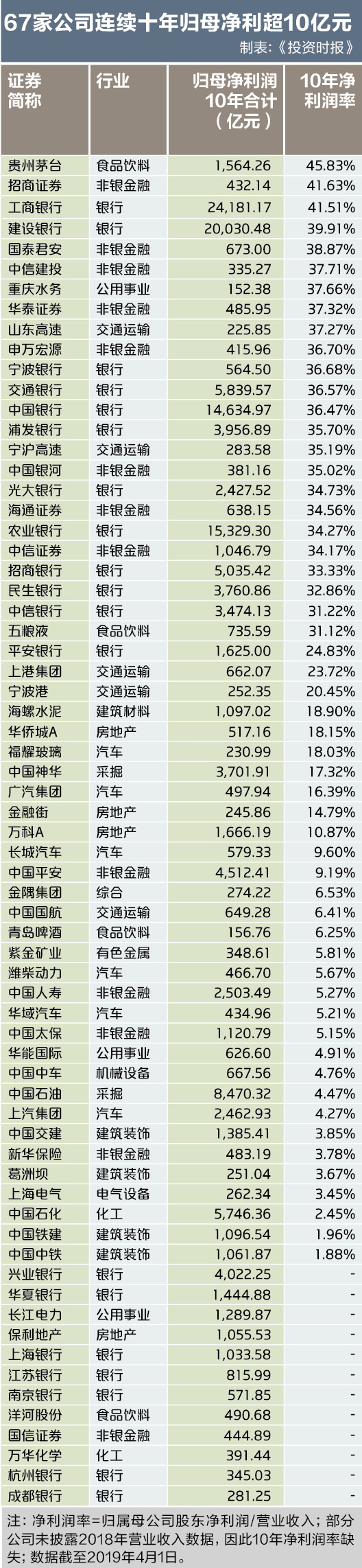 谁能连续十年归母净利超10亿?解密A股白金俱乐部成员