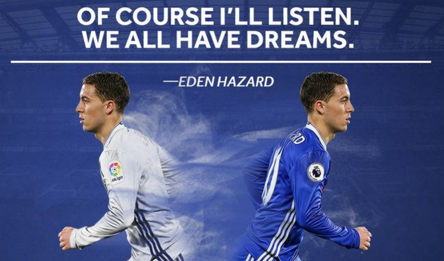 皇马和切尔西就阿扎尔转会一事展开谈判,阿扎尔本人心许皇马,因此白衣军团领跑比利时天王争夺战。也正因此,皇马和切尔西始终无法就转会费取得一致。
