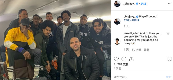 篮网这个赛季战绩出色,球队内部也非常的团结。之前战胜步行者的比赛结束之后,篮网中锋贾勒特-艾伦晒出了一张球成员在飞机上的合影。